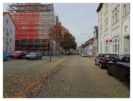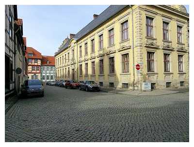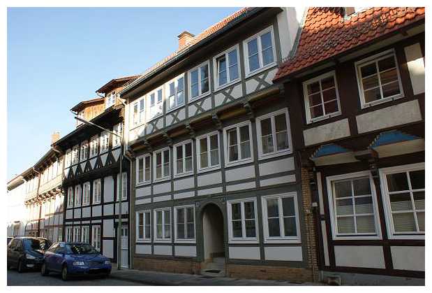 Die Straße wird von Amtsgasse und Georgienstraße in zwei etwa gleichgroße Teile geteilt und weist geschlossene Bebauung auf, die bis auf den Massivbau Nr. 14 von 1902/03 aus zwei – bis dreigeschossigen Fachwerkbauten des 16. bis 19.Jh. besteht. Darunter befinden sich einige der ältesten und reichsten Fachwerkbauten Helmstedts.