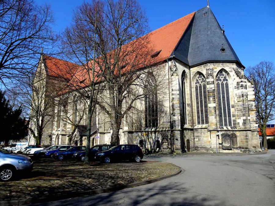 Der heutige Bau – eine dreischiffige gotische Halle mit 5/8 Chorschluß – wurde Ende 13./ Anfang 14. Jh. erbaut und Anfang 15.Jh. erneuert. Stilistische Beziehungen bestehen zu St. Magni in Braunschweig. Vom Anfang des 15. Jh. stammen die Kreuzrippengewölbe und der größte Teil der Außenmauern mit den hohen Maßwerkfenstern. Seit 1439 wurde der ältere Turm durch den heutigen turmlosen Westbau ersetzt, dessen drei Räume sich ehemals in hohen Spitzbögen zum Langhaus öffneten. Die zweigeschossige Westempore wurde erst Ende 16.Jh. eingefügt.