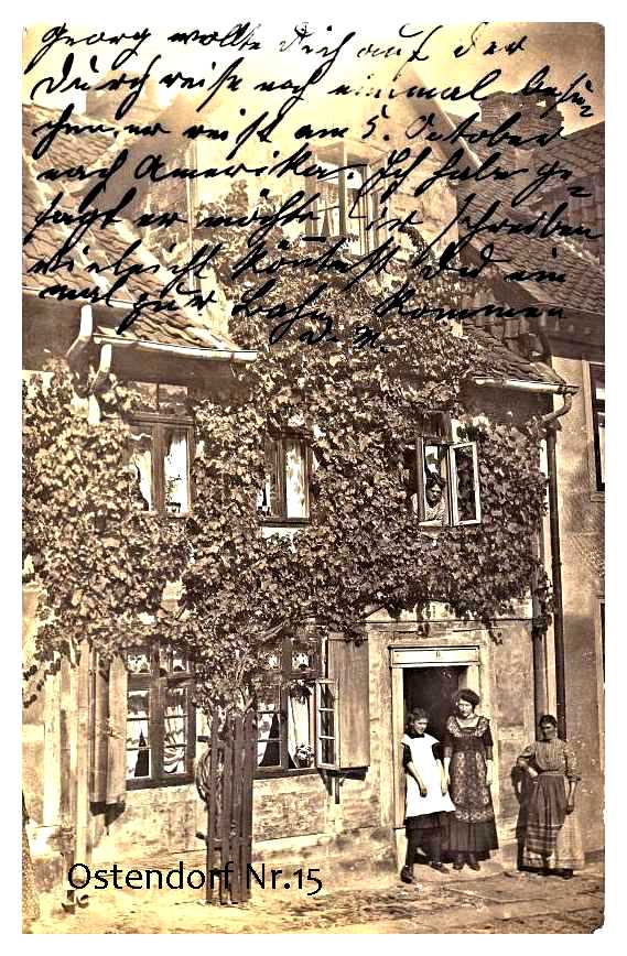 Im Haus Ostendorf 15 wohnten dann seine Tochter Bertha Otto, deren Mann Albert bereits 1928 verstorben war, und ih re Tochter Margarete, die 1936 den Sattler Reinhold Fricke heiratete. Das Ehepaar Fricke hatte drei Kinder: Margitta (geb. 1938), Hans Albert (geb. 1940) und Reinhold jun. (geb. 1942). Nach dem Tod von Bertha Otto 1962 ging Nr. 15 an Margarete Fricke Während die Tochter Margitta nach ihrer Hochzeit 1962 ihrem Ehemann nach Frankfurt/Main gefolgt ist, wohnen die Söhne noch heute im Ostendorf. Hans Albert hat 1969 das Haus Nr. 23 gekauft; Reinhold jun. 1971 das Haus Nr. 19. Nach dem Tod der Eltern (1980 bzw. 1985) haben die Kinder das Haus Nr. 15 verkauft.