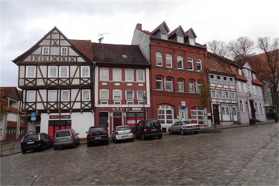 Die vorwiegend dreigeschossige Bebauung ist sehr gemischt. Fachwerkbauten herrschen vor, sie stammen aus dem 16. bis 19.Jh. und sind teilweise verkleidet oder verputzt, auch haben einige Bauten im 19.Jh. eine massive Fassade erhalten. Hinter der Fassade von Nr. 27 verstecken sich zwei Fachwerkbauten unterschiedlichen Alters. Dazwischen finden sich einige recht stattliche Massivbauten, die mit Ausnahme von Nr.1 am Markt von 1774, im 19.Jh. anstelle von älteren Fachwerkhäusern errichtet wurden.